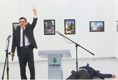 - AP &AFP ngày 19/12/2016:“Một tay súng mặc bộ đồ lớn (com-lê) thắt cà-vạt hô vang khẩu hiệu về chiến tranh Syria, “ Aleppo! Thượng Đế Vĩ Đại!” sau khi nổ súng giết vị đại sứ Nga tại Thổ Nhĩ Kỳ trước sự bàng hoàng của khách tham dự một buổi triển lãm nhiếp ảnh tại thủ đô Ankara.