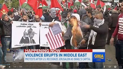 Theo Good Morning America ngày 16/12/2017,“Bộ Y Tế Palestine cho biết gần 400 người Palestines bị thương khắp vùng lãnh thổ, bốn người bị lính Do Thái bắn chết, hai ở West Bank, hai ở Gaza. Ngày hôm nay là ngày đẫm máu nhất kể từ khi Ô. Trump tuyên bố Jerusalem là thủ đô của Do Thái, trước chuyến viếng thăm vùng Trung Đông của Phó Tổng Thống Mike Pence.”