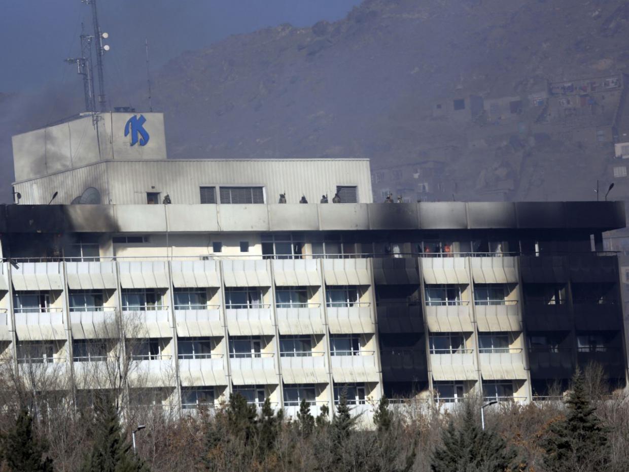 Afghan security personnel are seen at the roof of Intercontinental Hotel after an attack in Kabul, Afghanistan, Sunday, 21 January 2018