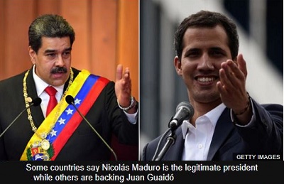 Kể từ ngày 10 tháng 1 năm 2019, Venezuela đã trải qua một cuộc khủng hoảng tổng thống. Tổng thống đương nhiệm Nicolás Maduro tái đắc cử làm tổng thống Venezuela đã bị một số tổ chức và chính phủ quốc gia khác nhau phản đối. Quốc hội Venezuelađã đưa Juan Guaidó lên làm Tổng thống lâm thời và lãnh đạo các cuộc biểu tình phản đối cuộc bầu cử của Maduro.