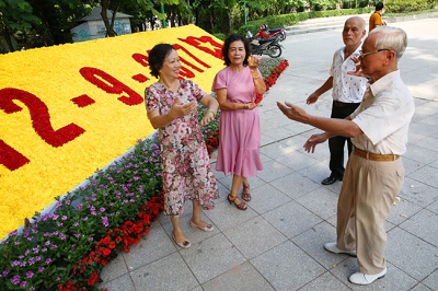 Không khí chào mừng ngày Quốc khánh tại một khu dân cư ở Mỹ Đình.