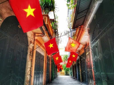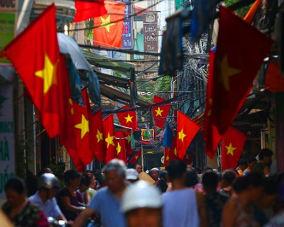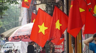 Cờ đỏ sao vàng trên phố Hàng Bông