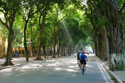 Khoảng không gian thanh bình của hàng cây sấu cổ thụ xanh tươi trên phố Phan Đình Phùng (Ba Đình) cổ kính.