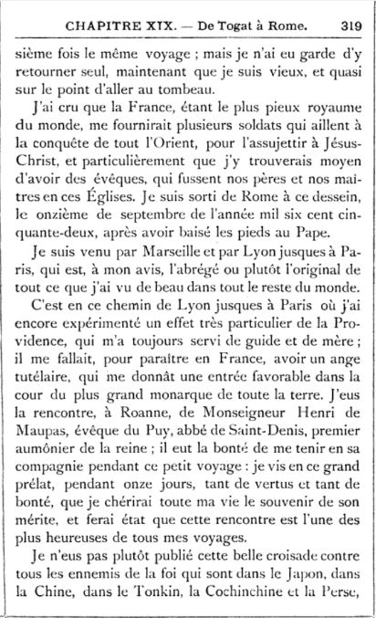 Tôi copy ra đây trang 319 của quyển sách Pháp ngữ, tựa là “Voyages Du P. De Rhodes, Chapitre XIX – De Togat à Rome” - Hành trình và Truyền Giáo.