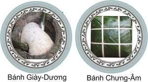 1- Bánh chưng: bánh gói bằng nếp hình vuông, còn có tên là địa bính tức bánh tượng trưng cho đất vuông. Bánh được chưng hấp nên gọi là bánh chưng.