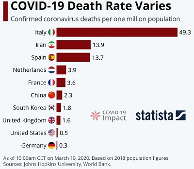 [Tử vong tại Hoa Kỳ đã lên đến 14,797 người, trong số 435,160 trường hợp nhiễm coronavirus. Chỉ trong một tuần lễ duy nhất, con số tử vong tại Hoa Kỳ đã gấp 3 lần con số của ngày thứ Năm tuần trước 2 tháng Tư. Trong 24 giờ qua, con số tử vong tại Hoa Kỳ là 1,940. Số trường hợp nhiễm bệnh mới được xác nhận là 31,935 người....]