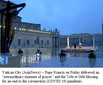 1 - Giáo hoàng kêu gọi các linh mục đến thăm những người bị Coronavirus khi ngài cử hành thánh lễ tại Vatican một mình trong buổi livestream giữa lúc mọi người trong nước Ý bị khóa cách ly ở nhà.