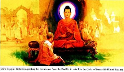 Không chỉ bấy nhiêu đó thôi mà còn một hình ảnh xúc động khác nữa khi Ngài cũng vì tâm Từ Đại Hiếu ấy chấp nhận cho nền chánh pháp sớm mạt độ trước 500 năm để thu nhận bà Di Mẫu Kiều Đàm, người đã từng bồng ẳm, nuôi nấng Thái Tử tất Đạt Đa khi mới vừa 7 ngày tuổi cho đến lúc lên lưng ngựa kiền Trắc, cùng Xa Nặc lướt qua mấy nẻo bụi hồng tím cầu chân lý, cùng hàng trăm vị khác vào tăng đoàn tu theo Ngài.