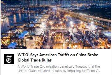 tháng 9 năm nay WTO ra phán quyết rằng thuế nhập khẩu do Mỹ áp đặt lên TQ