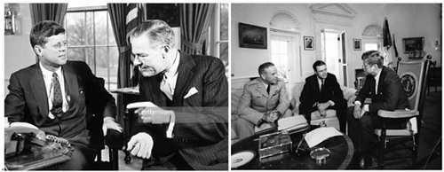 TT Kennedy đã yêu cầu họp riêng trong một phòng khác với Dean Rusk (Ngoại Trưởng), McNamara (Bộ Trưởng Quốc Phòng), Mac Bundy (Cố vấn An ninh Quốc gia) và Tướng Taylor (Tham Mưu Trưởng Quân Lực Hoa Kỳ).