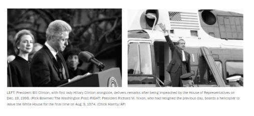 Những TT khác trong quá khứ, dù tội so ra rất ít, quá ít, so với những gì Trump đã tạo ra trong bốn năm, vẫn phải đối mặt với một số hình phạt: Clinton công nhận rằng ông ta đã man khai vê việc quan hệ tình dục với Monica, đã đồng ý trả 25 ngàn đô la cho chi phí pháp lý và chấp nhận bị đình chỉ 5 năm giấy phép hành nghề luật sư. Nixon đã phải từ chức khi sắp bị luận tội và bị cách chức. Và ít nhất Nixon cũng bày tỏ sự lo lắng, thừa nhận trong bài phát biểu từ chức của mình rằng một số điều ông ta làm là “sai”.