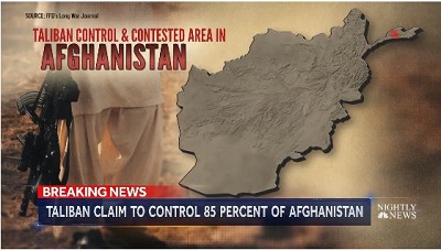 Vào ngày Thứ Bảy, LHQ đã ra lệnh rút bớt các nhân viên cứu trợ ở Faizabad. Một số quận vùng quê đã thất thủ khi Joe Biden bắt đầu những bước cuối để Hoa Kỳ rút quân khỏi A Phú Hãn khiến Taliban thu được một số lượng lớn vũ khí và thiết bị. Những tỉnh lớn và thành phố vẫn còn nằm dưới sự kiểm soát của chính phủ nhưng tốc độ của sự xụp đổ đã báo động cho Hoa Thịnh Đốn và đồng minh NATO lo sợ rằng nó sẽ là một chiến thắng như thác lũ không sao tránh khỏi của Taliban.