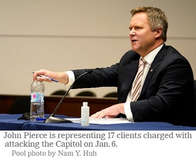 Đó là luật sư John Pierce. Gần đây, Pierce đã tạo dựng được tên tuổi của mình bằng cách bảo vệ những kẻ bạo loạn khỏi cuộc nổi dậy ngày 6 tháng 1 và vì đã kịch liệt chống lại vắc-xin, tweet những câu như:
