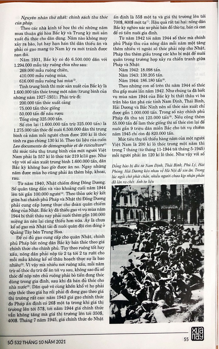 Bài "Nạn đói năm Ất Dậu 1945" đã được đăng lại trên tạp chí Xưa & Nay số 532, tháng 10, năm 2021. Các trang sau đây được 1 bạn đọc gửi vào diễn đàn thư tín. Tuy các đoạn chót chưa đầy đủ nhưng những phần trình bày ở 3 trang đã nói lên chủ đích của tác giả. Xin đăng lên để đóng góp thêm vào các lập luận của tác giả Nguyễn Mạnh Quang về nạn đói (xem Thêm 1 Âm Mưu Xóa Tội - Nguyên Nhân Thực Sự Của Nạn Đói Năm 1945.) Mời quí vị theo dõi. (SH)