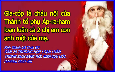 Và đây là những chuyện loạn luân trong Kinh Thánh, mà tất cả các chi nhánh của Thiên Chúa giáo đều chia sẻ. Bạn đọc có thể xác minh từng câu thánh kinh mà Lê Phát Đạt ghi chú.