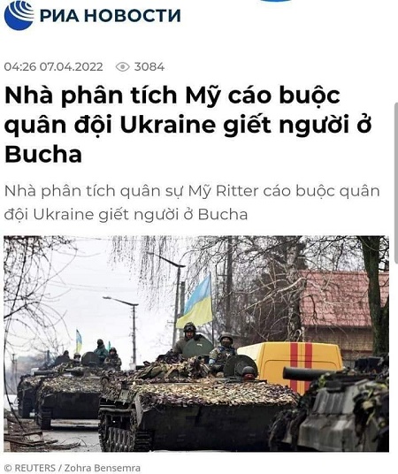 NEW YORK, ngày 7 tháng 4 - RIA Novosti. Một nhà phân tích quân sự người Mỹ, cựu thanh tra vũ khí Liên Hợp Quốc tại Iraq Scott Ritter, cho biết người dân ở thành phố Bucha gần Kiev đã chết dưới tay quân đội Ukraine.Theo ông, quân đội Nga tuyên bố rằng quân đội Nga đã ở Bucha trong vài tuần, quân đội Nga có quan hệ tốt với người dân địa phương.