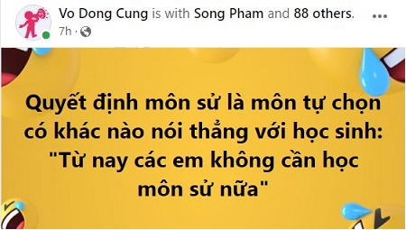 Hình 3: Thể hiện cam kết trách nhiệm giáo dục môn Lịch sử sau khi bị dư luận xã hội phản đối.