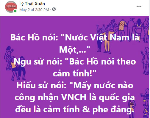 Mấy lý luận trên dựa vào các sự kiện, tình trạng thực tế lịch sử, và pháp lý thực tiễn, không phải CẢM TÍNH nhé.
