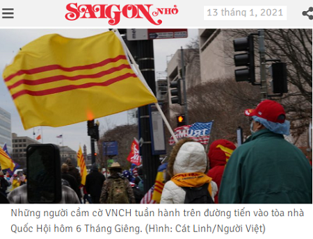Trong hình dưới đây Kevin Seefried mang cờ Nam quân vào trong Tòa Capitol của Quốc Hội Mỹ nhân cuộc bạo loạn ngày 6/1/2021.