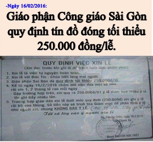 Tôi trừ ra 15 ngàn nữ tu tự nuôi trẻ sinh sống thì còn lại 25 ngàn Linh mục, tu sĩ và chủng sinh cả đời không lao động được 1 ngàn. Tiền ăn, tiền học, tiền chữa bệnh, tiền các Ngài lo cho gia đình. Tiền xây 6 ngàn cái nhà thờ lớn nhỏ và gần cả ngàn cơ sở dòng tu, học viện, chủng viện, Tỉnh dòng, trung tâm mục vụ, trung tâm hành hương đều chất lên đầu 7 triệu giáo dân ấy.