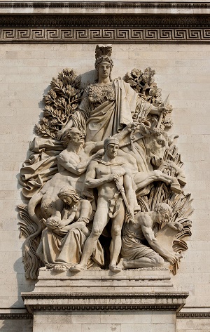 Các tấm ảnh khắc trên Cổng Khải Hoàn ở Paris có ý nghĩa rất chung: Là biểu tượng của lòng yêu nước Pháp, chứ không có chút ý nghĩa nào riêng cho phe nhóm hay về tôn giáo cả, mặc dù Ki-tô giáo là niềm tin chung của nước Pháp thời bấy giờ.
