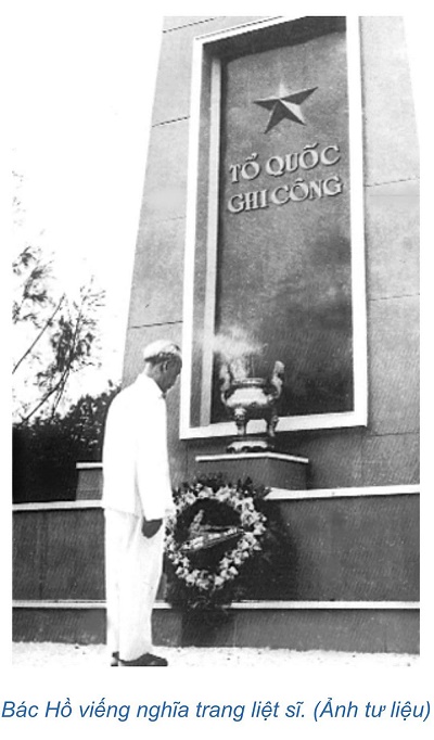 Đối với các liệt sĩ, thì mỗi địa phương (thành phố, làng, xã) cần xây dựng vườn hoa và bia kỷ niệm ghi sự hy sinh anh dũng của các liệt sĩ, để đời đời giáo dục tinh thần yêu nước cho nhân dân ta. Đối với cha mẹ, vợ con của thương binh, liệt sĩ mà thiếu sức lao động và túng thiếu thì chính quyền địa phương phải giúp đỡ họ có công ăn việc làm thích hợp, quyết không để họ bị đói rét”.