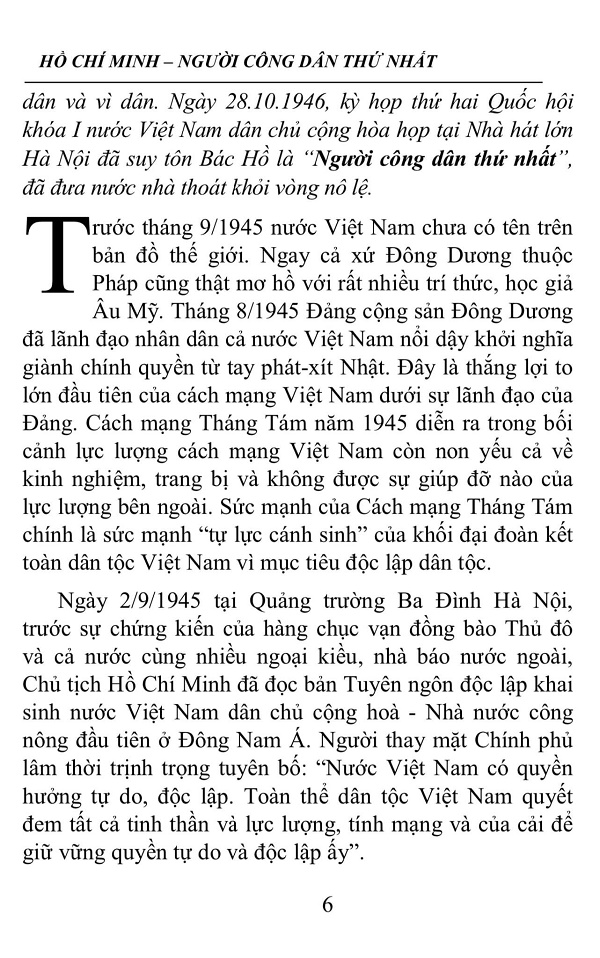 Ngày 28.10.1946, kỳ họp thứ hai Quốc hội khóa I nước Việt Nam dân chủ cộng hòa họp tại Nhà hát lớn Hà Nội đã suy tôn Bác Hồ là “Người công dân thứ nhất”, đã đưa nước nhà thoát khỏi vòng nô lệ.