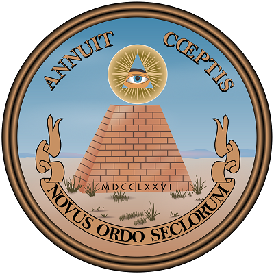 - Novus ordo seclorum (tiếng Latin có nghĩa là "Trật tự mới của các thời đại") xuất hiện ở mặt sau của Đại ấn;