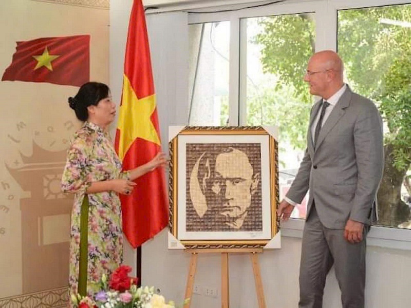 Phó thủ tướng LB Nga tiếp nhận bức tranh gáo dừa cho TT Putin nhân chuyến thăm VN tháng 6/2024
