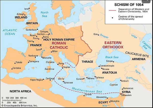 1.- Giáo Hội Chính Thống (Orthodox) khời đầu cũng bắt nguồn từ đạo Kitô Do Thái. Vào năm 325, khi triệu tập Hội Nghi Nicea để thông qua tín lý Chúa Ba Ngôi, thì Hòang Đế Constantine cũng chia Đế Quốc La Mã ra làm hai về tôn giáo: Đế Quốc Phương Tây (Giáo Hội La Mã) gồm các nước trong vùng phía Tây và Tây Nam Âu Châu với thủ đô là La Mã, và Đế Quốc Phương Đông (Giáo Hội Đông Phương hay Chính Thống Giáo) gồm các nước Hy Lạp, Thổ Nhĩ Kỳ, Nga và nhiều nước khác trong vùng phía Đông Địa Trung Hải với thủ đô là Constantinople.