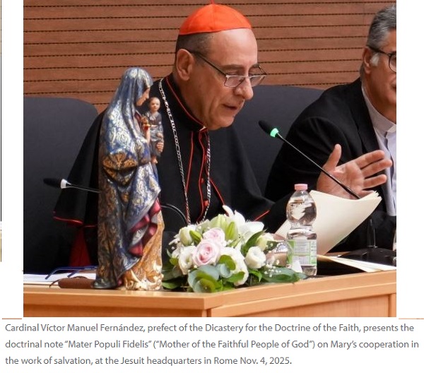 Bạn sẽ nghĩ rằng cái ổ tội lỗi và sự đồi bại khốn nạn này, được gọi là Bộ Giáo lý Đức tin (DDF) dưới sự lãnh đạo của Victor “Hãy chữa lành cho tôi bằng miệng của ngài” Fernandez, sẽ đủ thông minh để không xúc phạm Đức Mẹ bằng cách tấn công vai trò của Người trong công cuộc cứu chuộc của Chúa Kitô và vai trò không thể thiếu của Người trong việc chuyển ban mọi ân sủng. Nhưng than ôi – họ đã làm điều đó. Tính đồng nghị đã đòi hỏi điều đó.