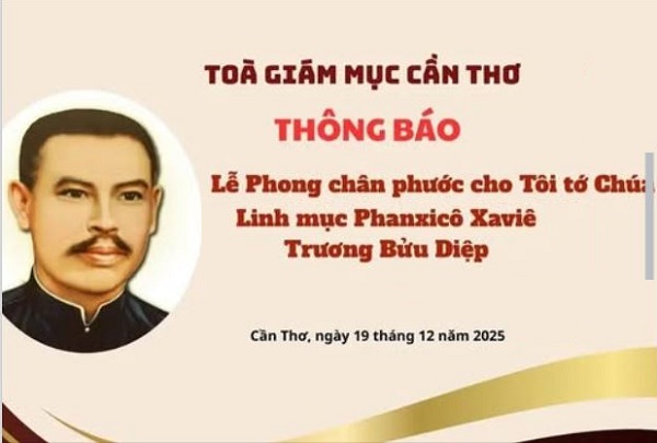 (15) Cha Phanxicô Trương Bửu Diệp sẽ được phong Chân phước vào ngày 2/7/2026, ( Vatican News ngày 19 tháng 12 2025)