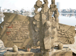 Đài kỷ niệm tại hồ Trúc Bạch ghi dấu ngày quân đội Bắc Việt bắn rơi chiếc Skyhawk A4 do thiếu tá phi công John McCain điều khiển. Tóm tắt bia tưởng niệm ghi: "Ngày 26 tháng 10, năm 1967, hải quân thiếu tá phi công John McCain trong chiếc A4 B1 bị bắn hạ bên hồ này." (hình và chú thích của sachhiem.net)